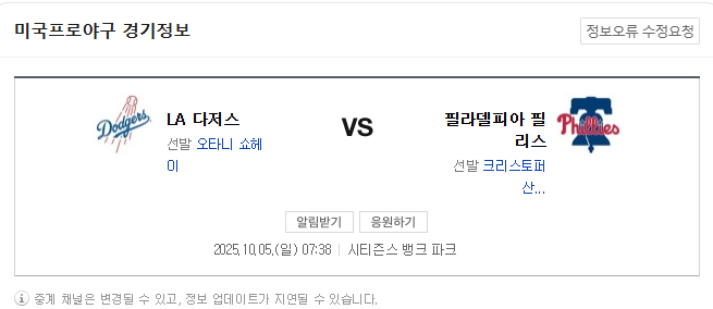 이 경기는 다저스 vs 필라델피아 1차전 중계 중에서도