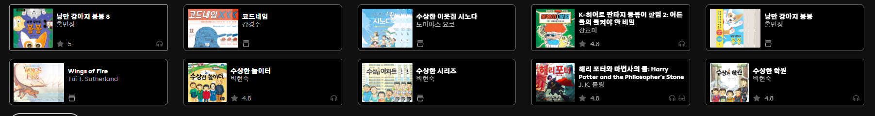 - 폭넓은 콘텐츠 – 동화, 학습, 소설, 에세이 등 전 연령 맞춤형