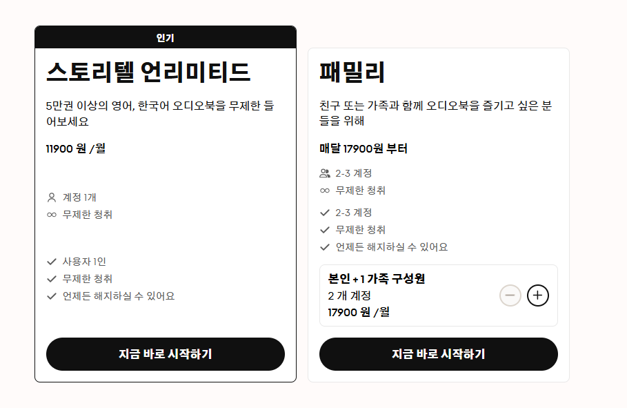 📌 스토리텔 가족형 요금제로 시작한 오디오북 구독