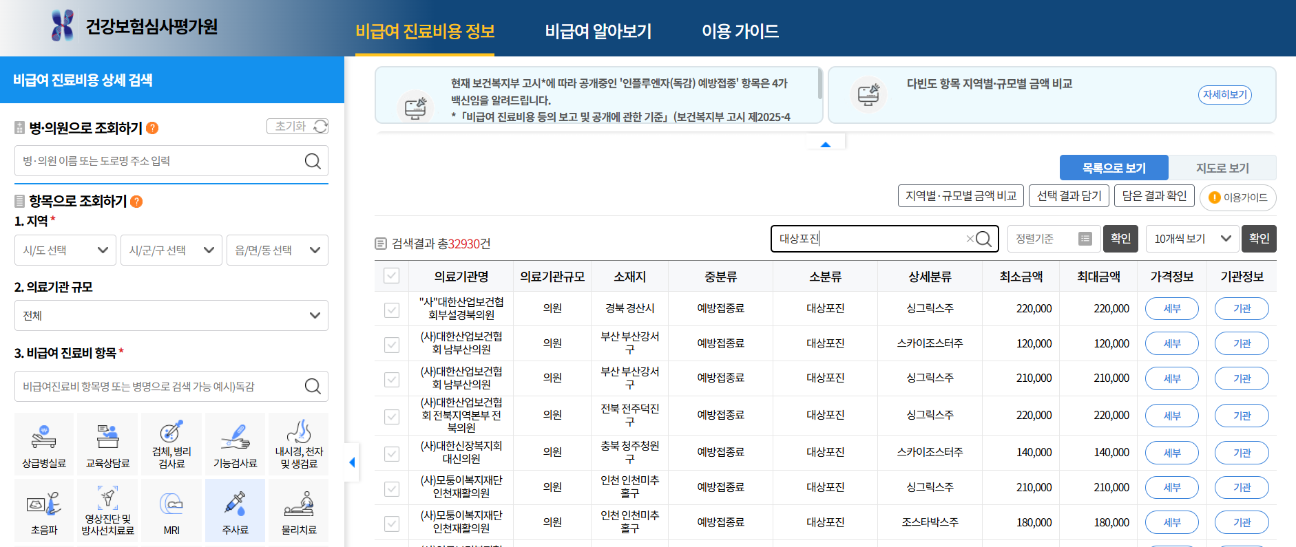 ✅ 4. 건강보험심사평가원에서 비급여 주사 조회해 보