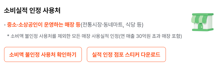 - 인정되는 곳 : 전통시장, 동네마트, 식당, 연 매출 30억 이하 소상공인 매장 등