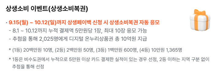상생페이백 신청만 해도 자동응모 되는 상생소비복권 이벤트도 있습니다.