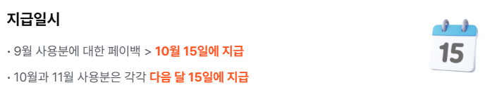 소비분에 따라 지급일이 다르니 꼭 체크하세요.