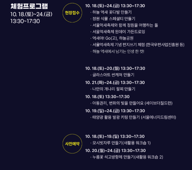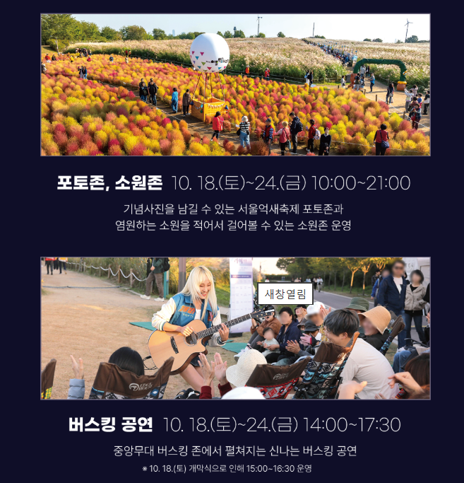 - 운영 시간: 14:00~17:30 (10.18 개막일: 15:00~16:30)