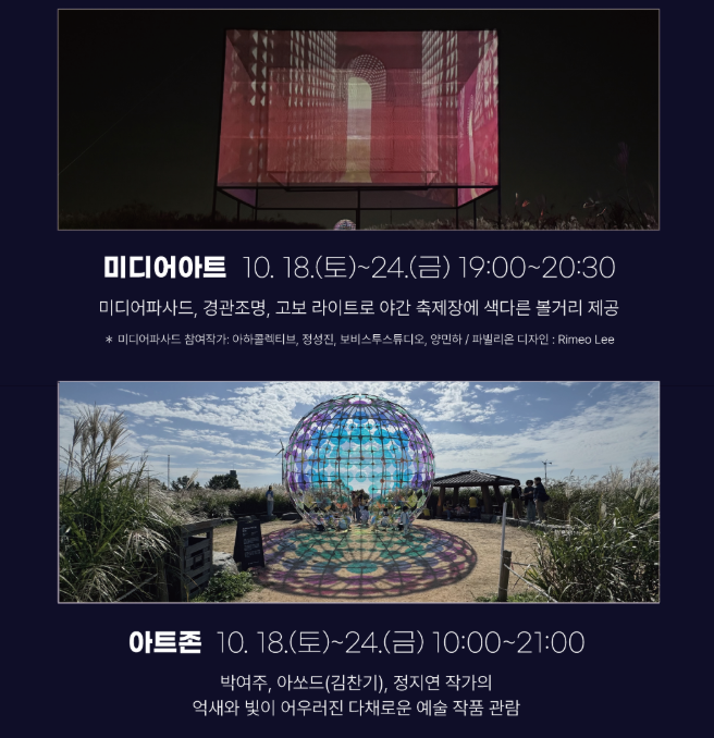 - 특징: 억새밭과 빛, 예술 작품이 어우러진 가을 축제