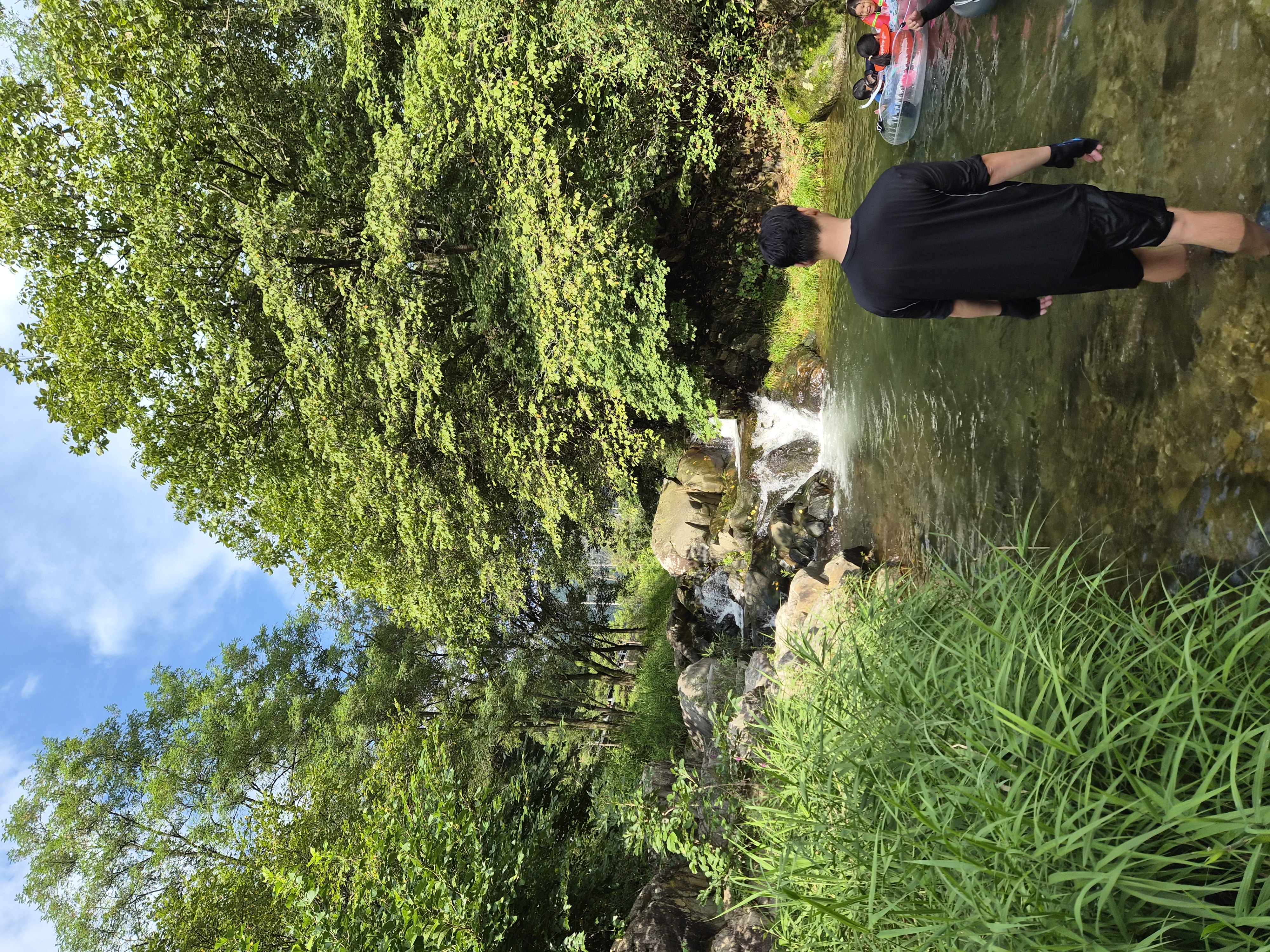 바로 옆에는 작은 명암계곡이 흘러서 아이들이 물놀이하기에 딱이에요. 물이 깊지 않아 안전하게 놀 수 있고, 어른들은 발 담그고 피서 즐기기 좋았어요.