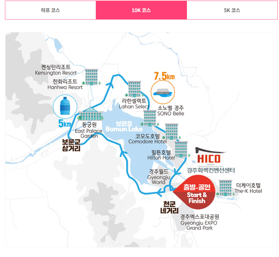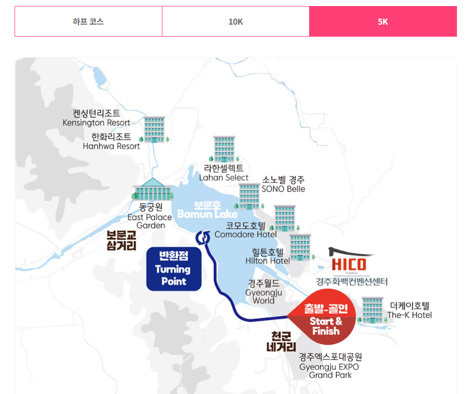 하프마라톤, 10K, 5K 코스별로 난이도와 제한 시간이 다르므로 자신의 러닝 수준에 맞는 종목을 선택하고, 경주 하프마라톤 코스, 경주 10K 마라톤 코스, 경주 5K 마라톤 코스 특징을 사전에 확인해 두면 훨씬 수월하게 완주할 수 있습니다.