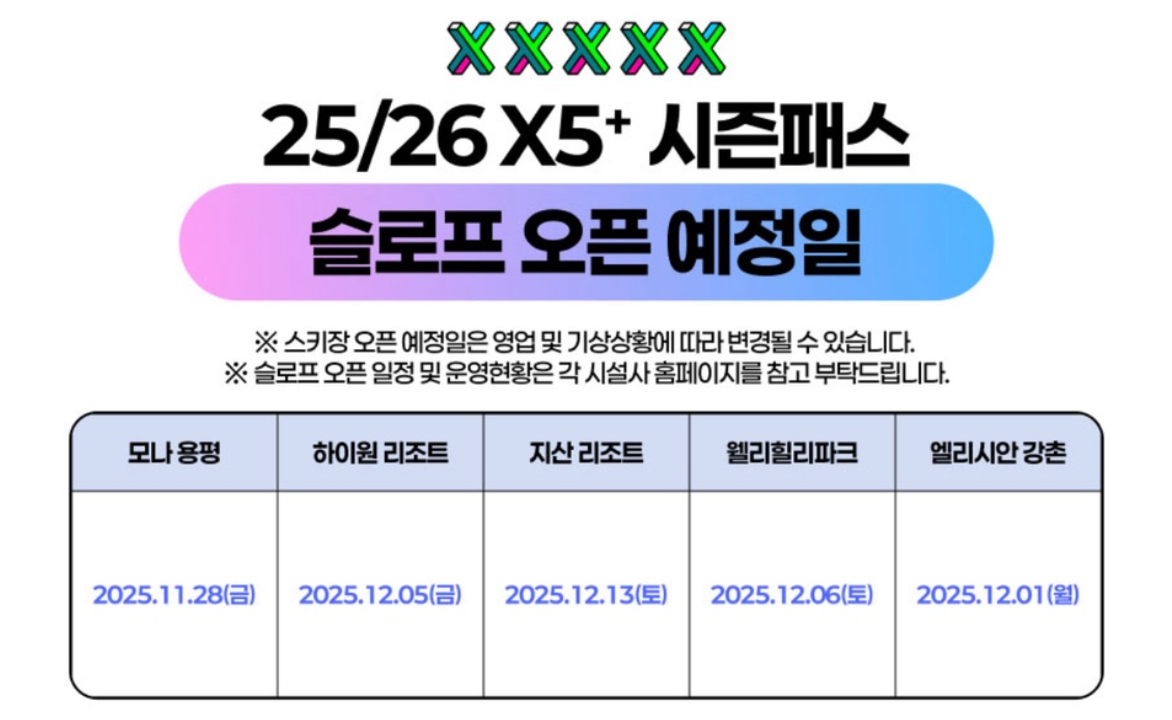 드디어 지산리조트의 2025·2026 시즌 오픈일이 12월 13일로 공식 발표되면서