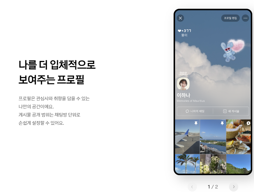 - 이번 업데이트에서는 친구 피드형 UI가 적용돼서, 친구의 프로필 사진, 배경사진, 게시물, 상태 메시지 변경 내역이 SNS 타임라인처럼 격자형 피드로 표시돼요.