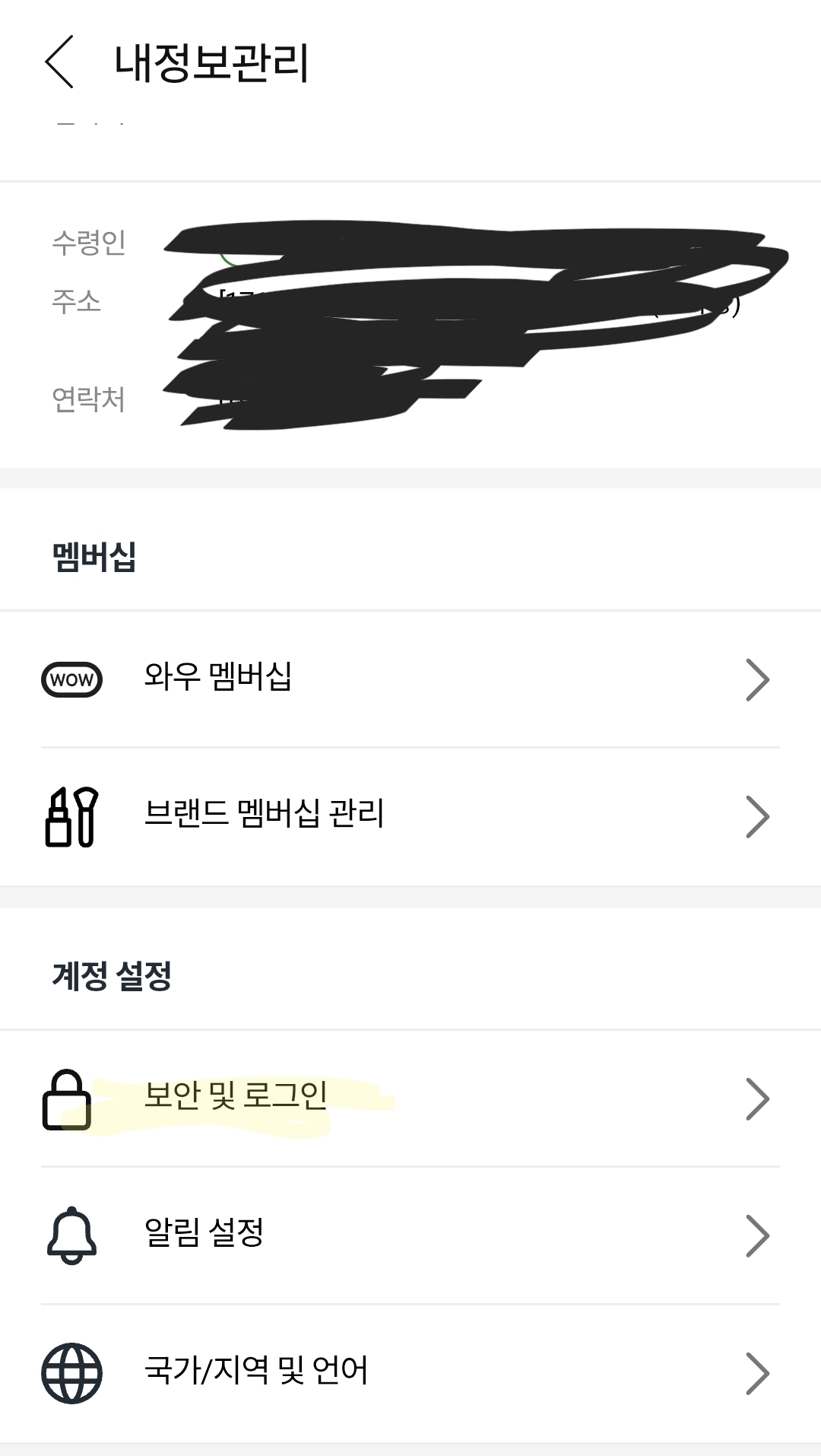쿠팡 앱 → 마이쿠팡 → 설정 → 비밀번호 변경