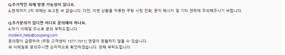 쿠팡에서 개인정보가 직접 유출되는 사례는 거의 없지만,