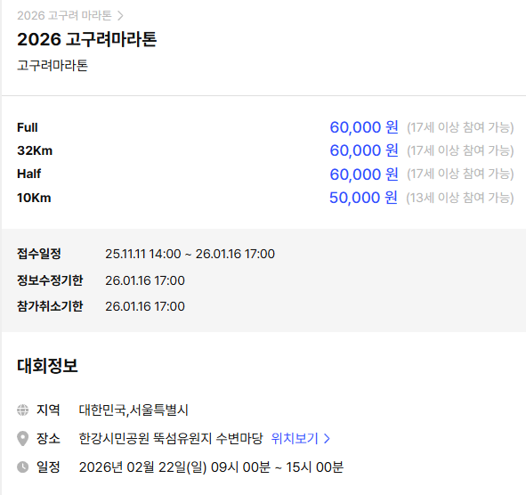 고구려마라톤은 2025년 첫 개최 이후 꾸준히 성장 중인 겨울 한강 마라톤 대회로,
