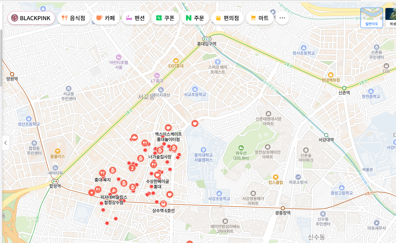 결국 마포구 – 특히 홍대, 상수 주변 상권에 집중하게 됐어요.