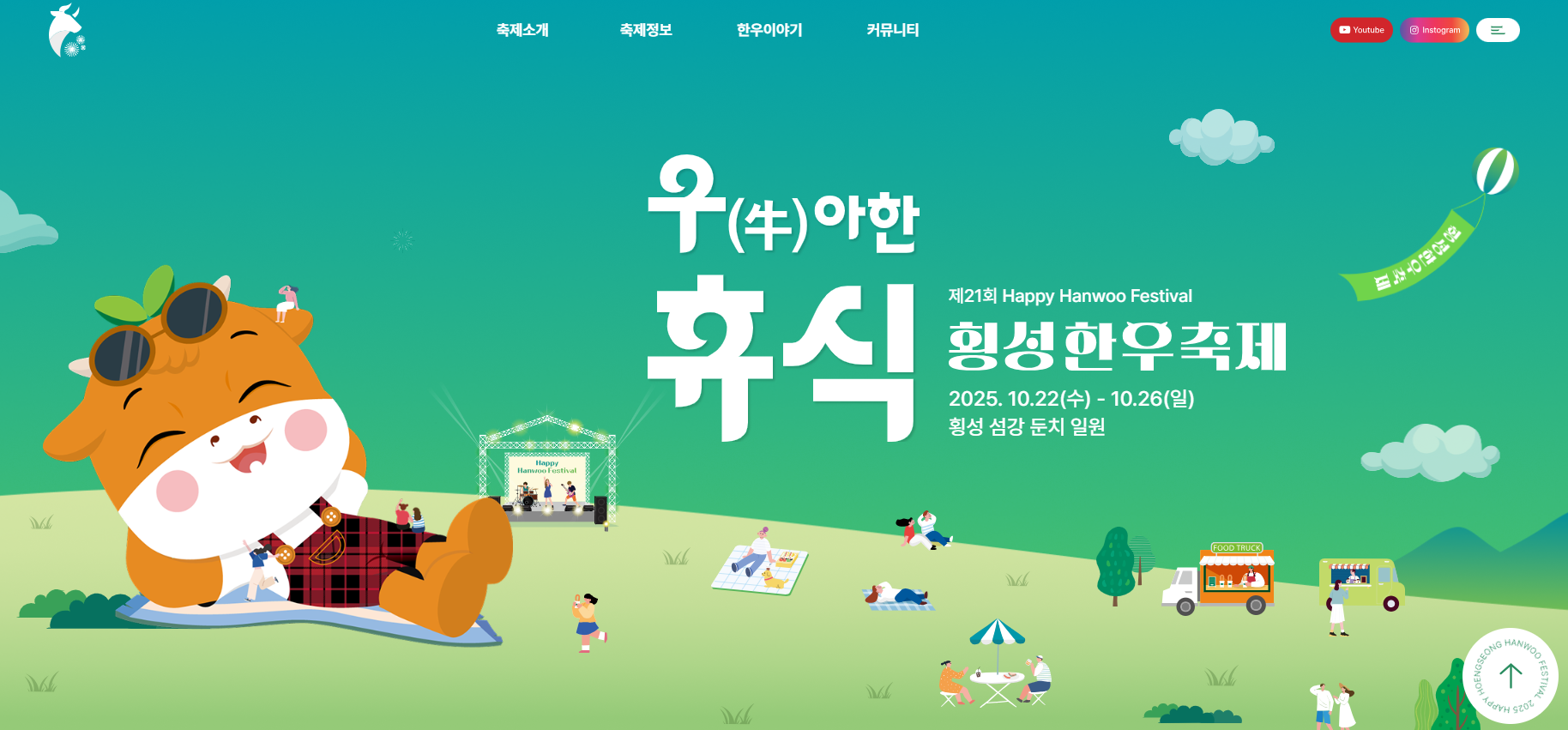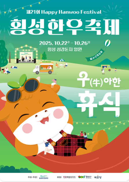 2025 제21회 횡성한우축제가 10월 22일부터 26일까지 횡성 섬강둔치에서 열립니다.