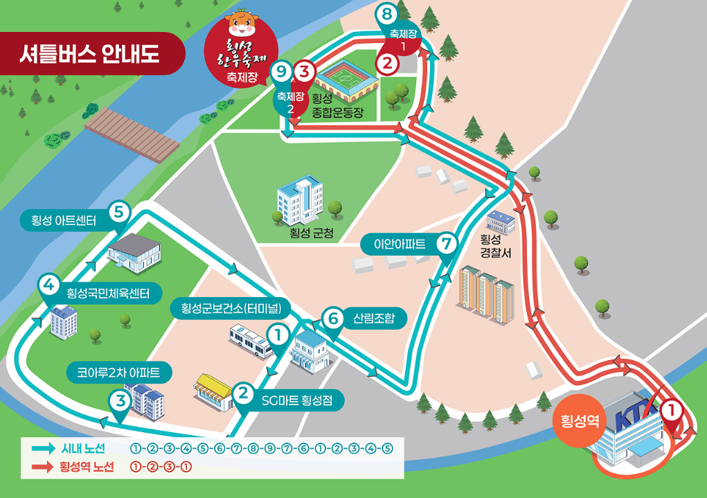 - 주요 노선: 횡성역 → 군청 → 축제장 → 운동장 순환