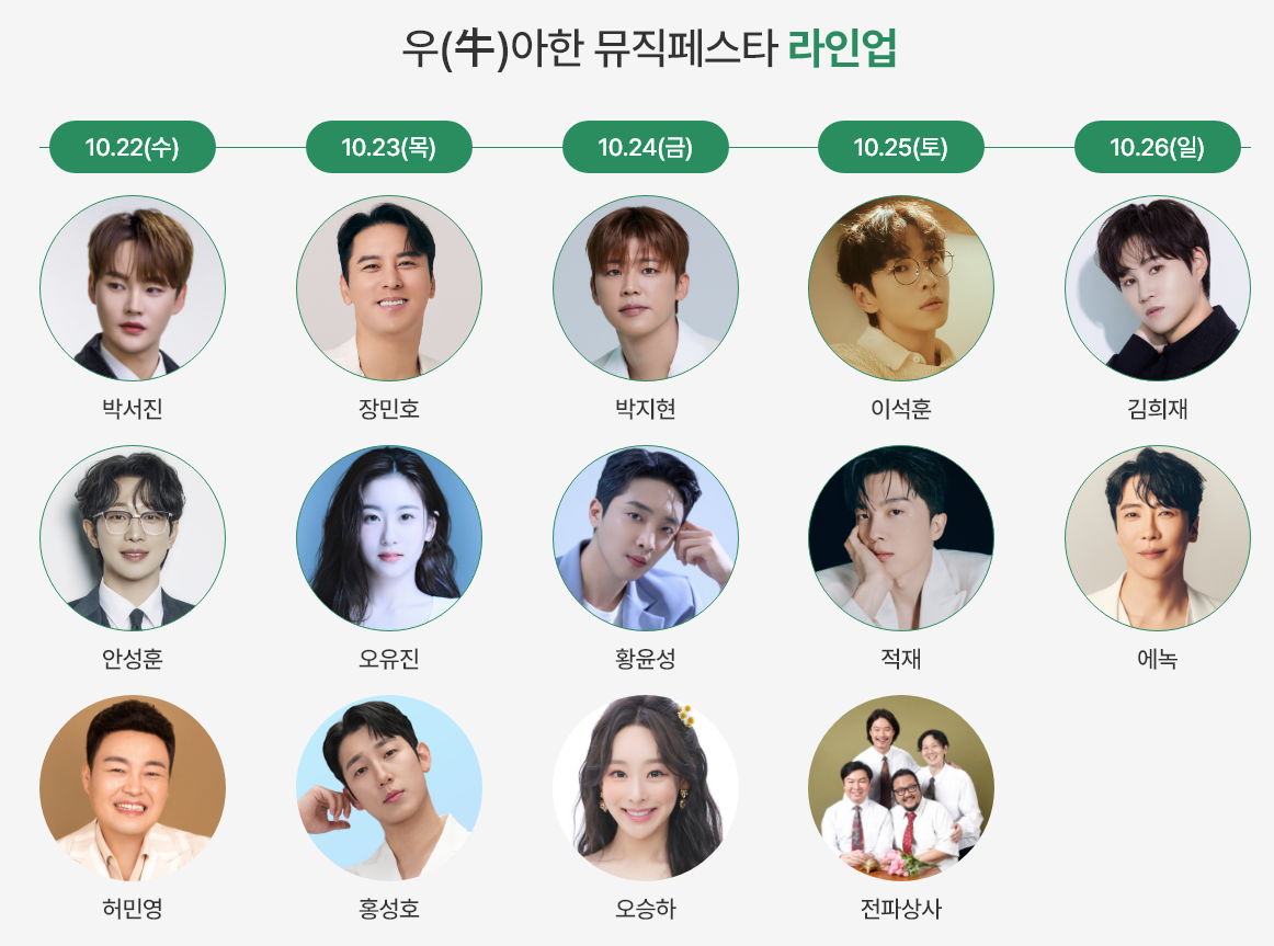 - 우(牛)아한 뮤직페스타: 19:00~21:00, 메인무대