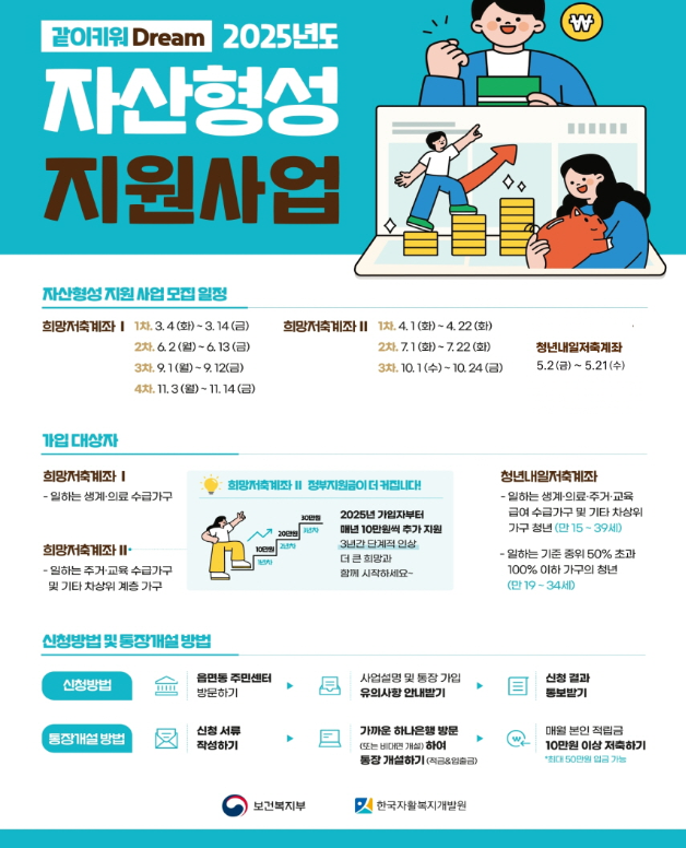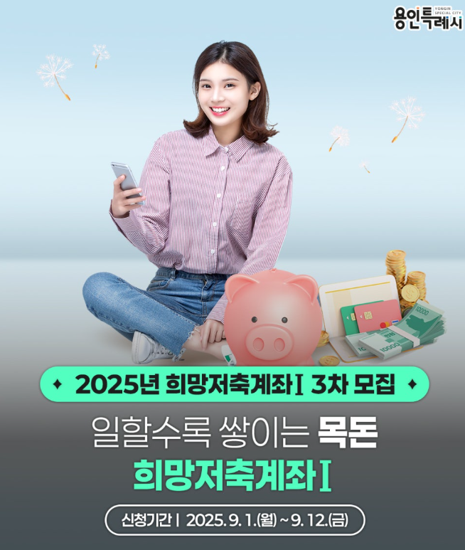 경제적으로 자립을 준비하는 저소득 가구를 위해 정부와 용인시가 함께하는 희망저축계좌Ⅰ 2025년도 3차 모집이 시작됩니다.