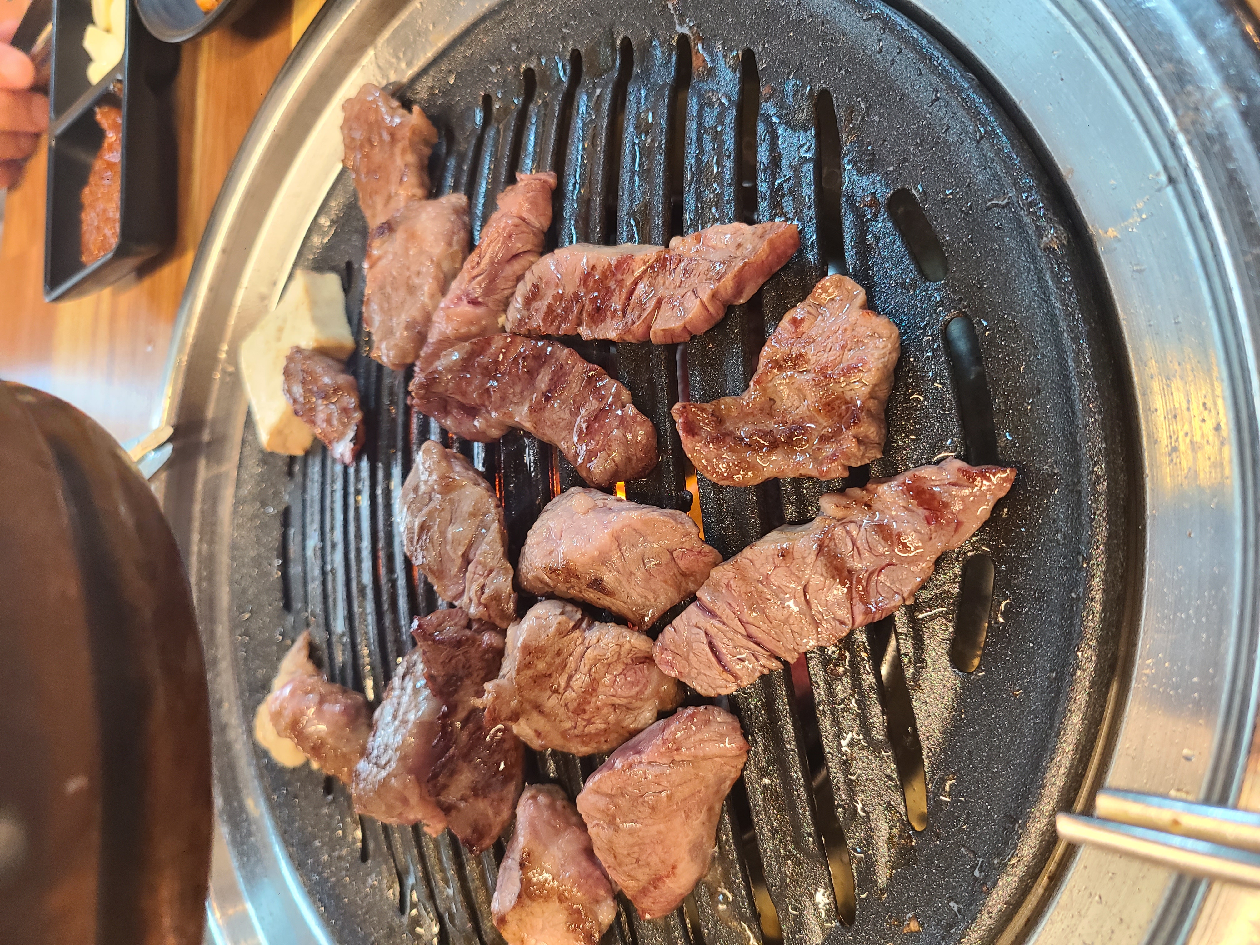 빨리익는 차돌박이와 우삼겹으로 먹고 나면 안창살과 갈빗살을 구워 먹으니