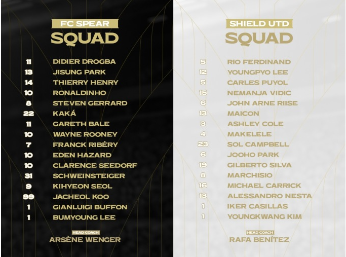 - 실드 유나이티드(방패팀) : 이영표, 박주호, 애슐리 콜, 마이콘, 네스타, 솔 캠벨, 퍼디난드-비디치 라인에 질베르투 실바, 부폰까지