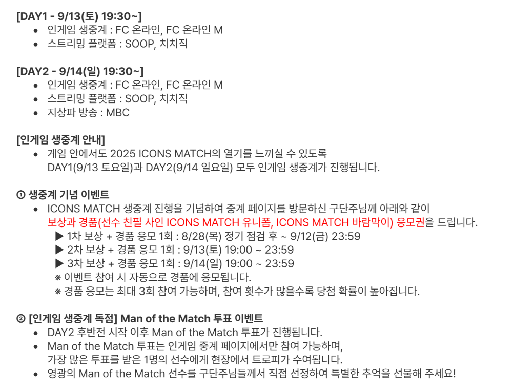 아이콘매치 2025는 단순 경기 관람이 아니라, 실제 결과가 FC 온라인에 반영됩니다.