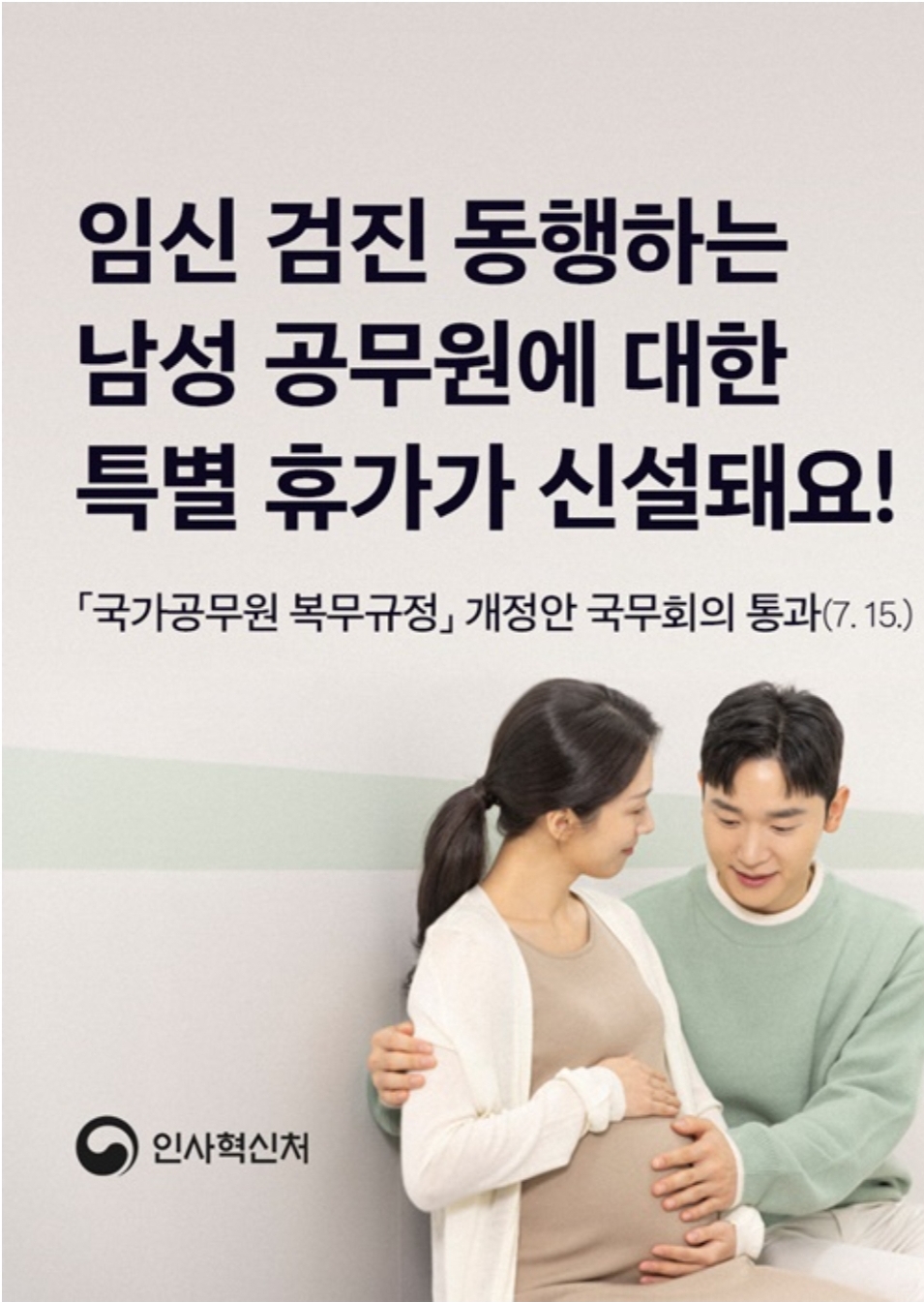 기존에는 임신한 아내의 검진에 함께 가기 위해 연차나 조퇴를 내야 했지만, 이제는 제도적으로 보장되는 ‘동행휴가’가 생긴 것이죠.
