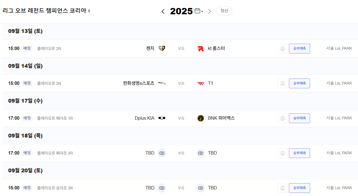 다만, 예년 기준으로 결승전은 플레이오프 종료 직후 9월 28일(일) 인천 인스파이어 아레나에서 결승전이 열릴 예정이에요!