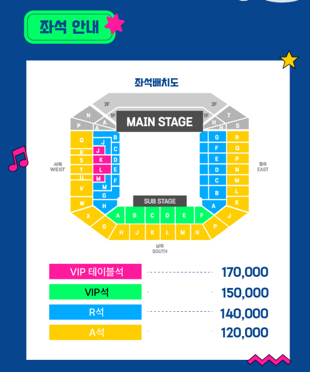 - 티켓 가격 : VIP테이블석 170,000원/ VIP석 150,000원/ R석 140,000원 / A석 120,000원
